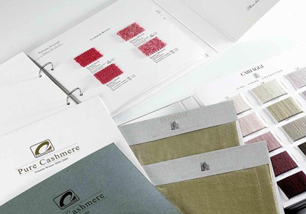 裁切面料,每片面料后面或下方印面料參數(shù)及貨號。組裝入冊。